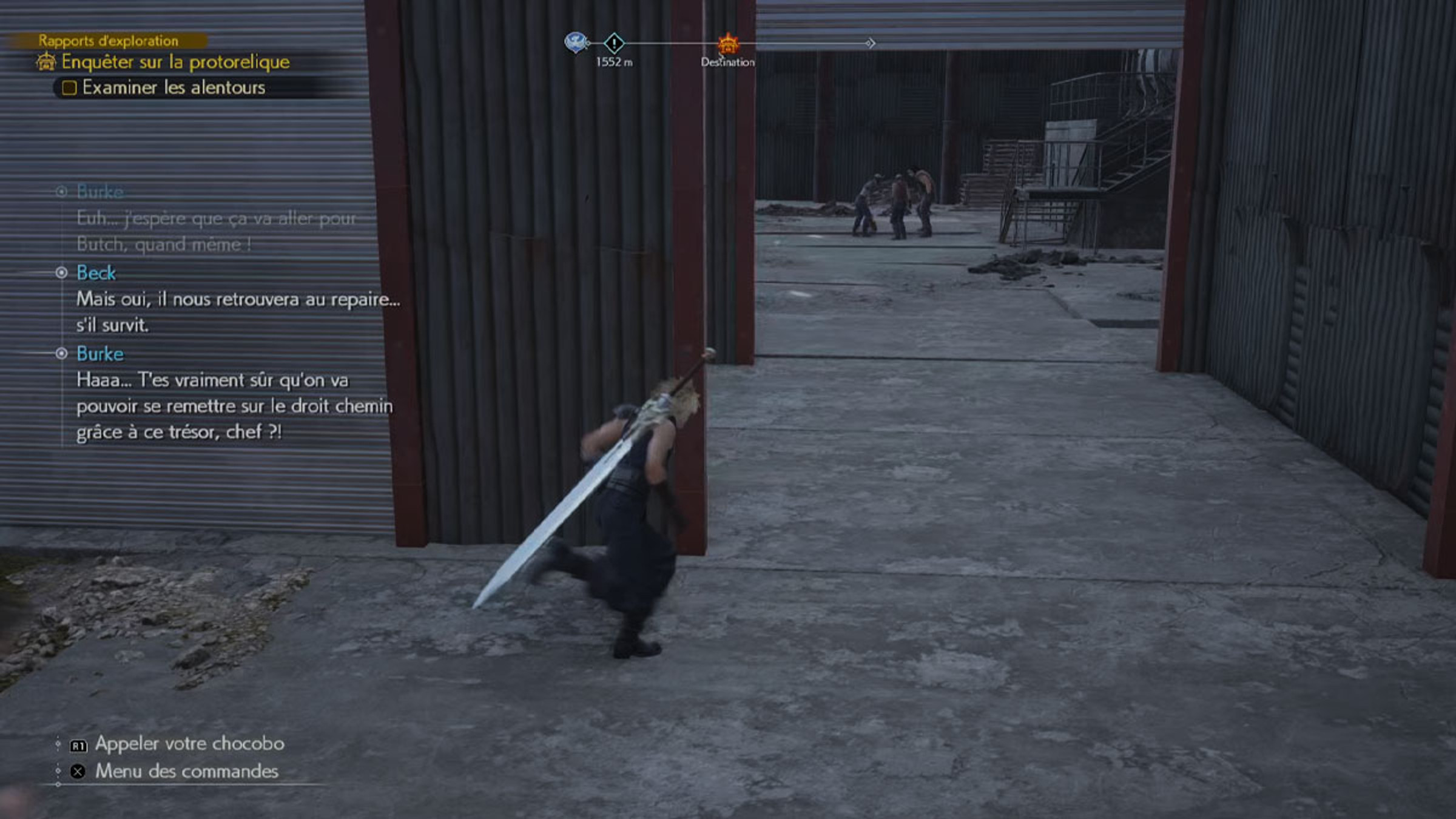 Après le combat, vous devez appeler votre chocobo et utiliser son flair pour trouver la clé du repaire de Beck pour la dernière étape de cette Protorelique.