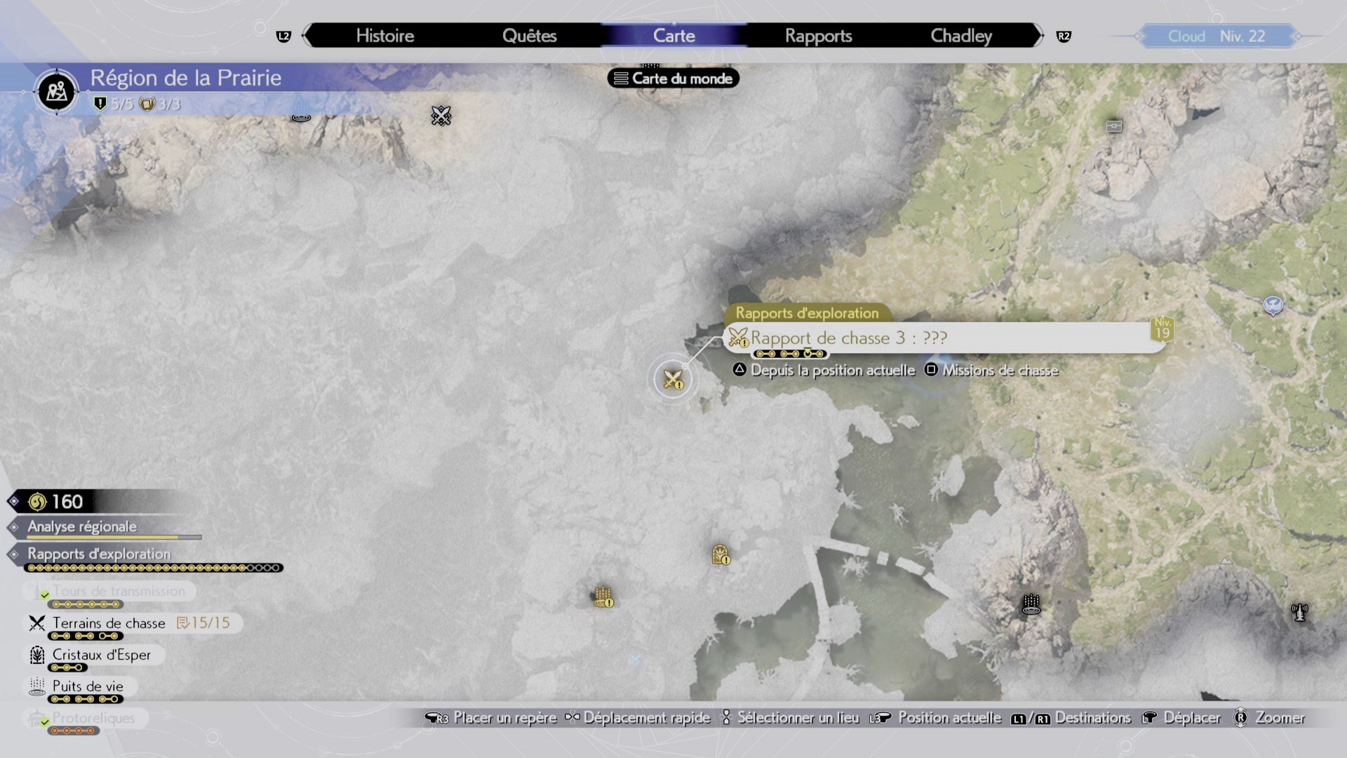 Lieu : Pour trouver le rapport de chasse 3 de la Région de la Prairie, sur le point d’intérêt ci-dessus, non loin des marécages.
