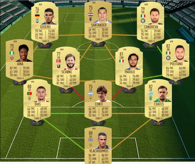 Notre exemple de solution pour le défi Dortmund vs Inter (via le créateur Futbin)