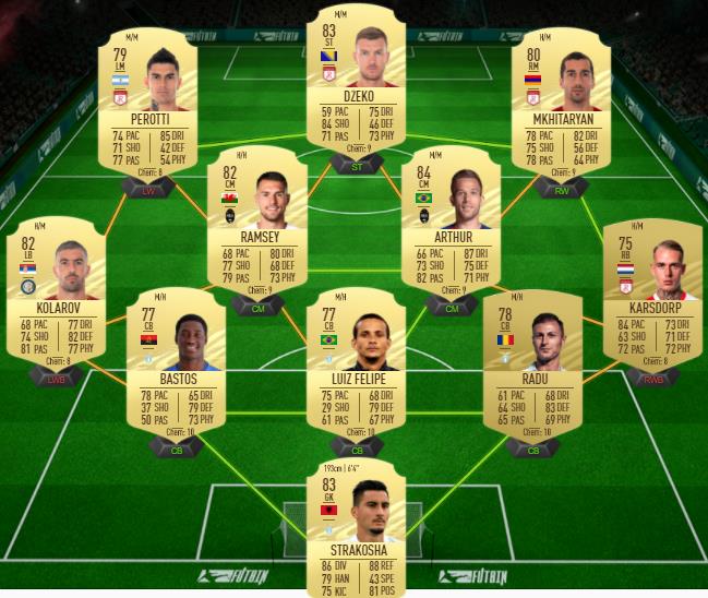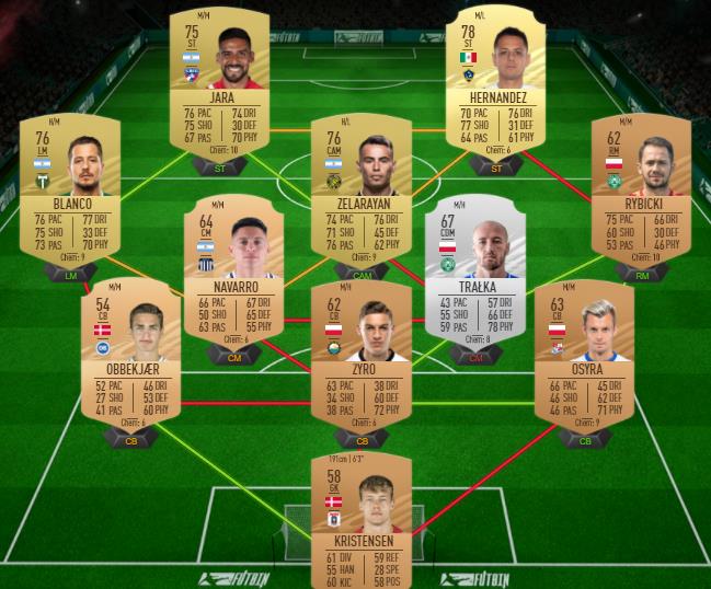 Notre exemple de solution pour le défi Huit élites (via le créateur Futbin)