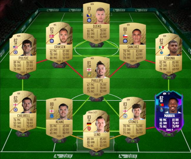 Notre exemple de solution pour le défi En route pour l’élimination directe (via le créateur Futbin)