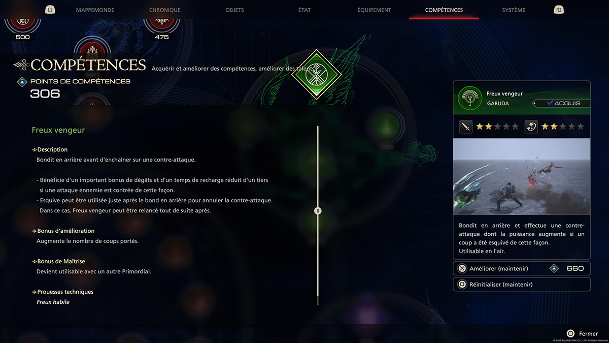 Freux vengeur vous offre une option défensive. Dans Final Fantasy 16, l’esquive est déjà puissante, mais ce coup la porte à un niveau supérieur. Lorsqu’il active