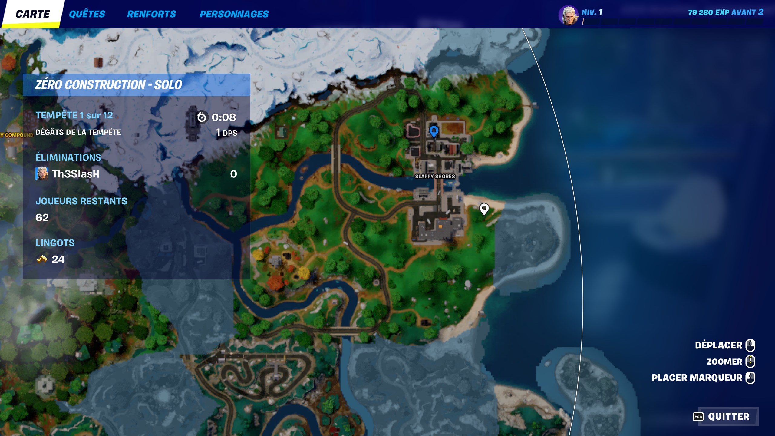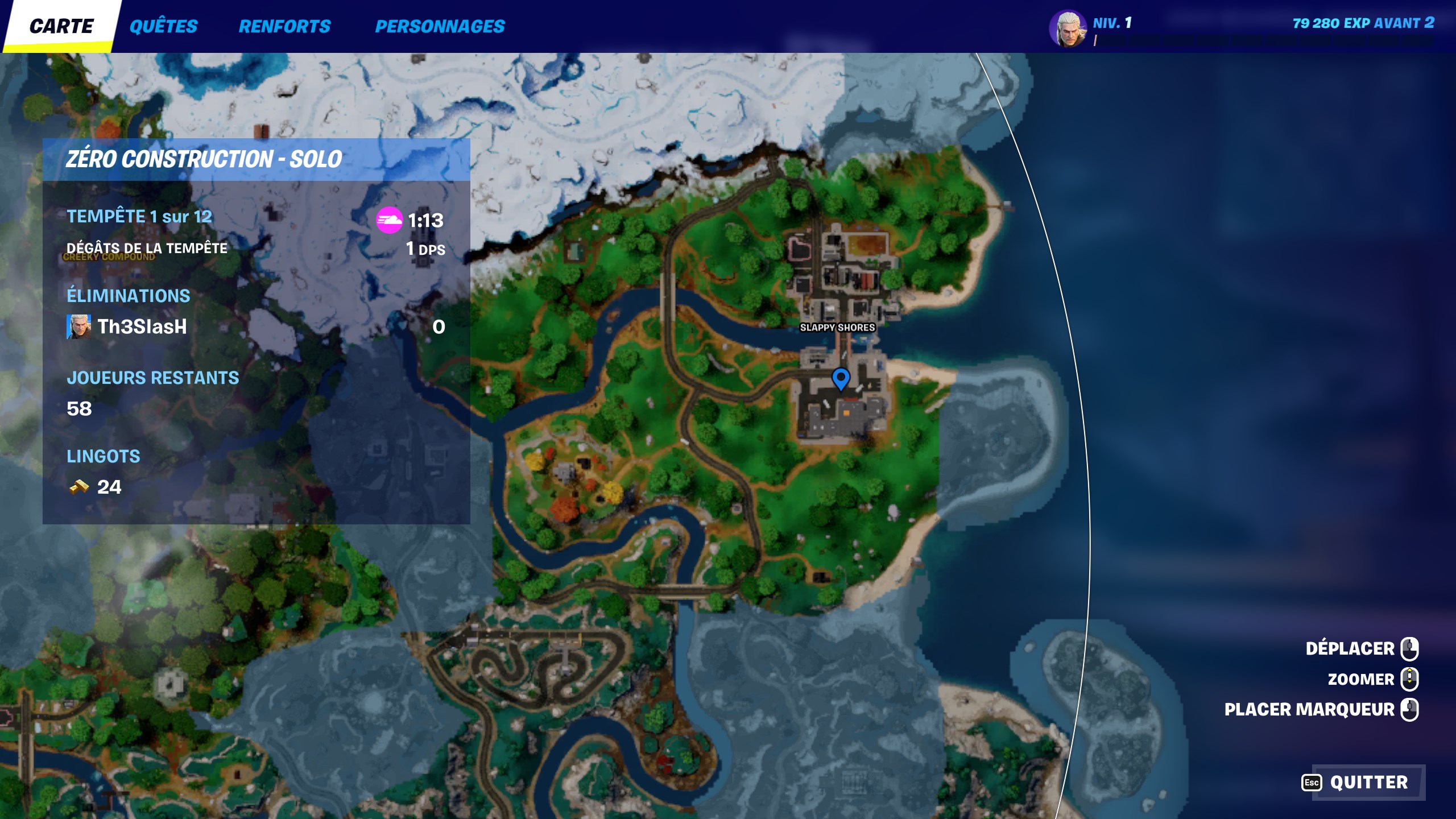 Allez à l’emplacement du marqueur bleu pour trouver la place forte de Thorne de Slappy Shores