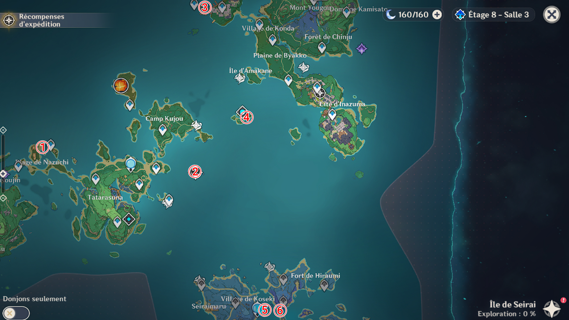 Watatsumi, mais aussi aux emplacements 1, 3, 4, et 5 d’Inazuma.