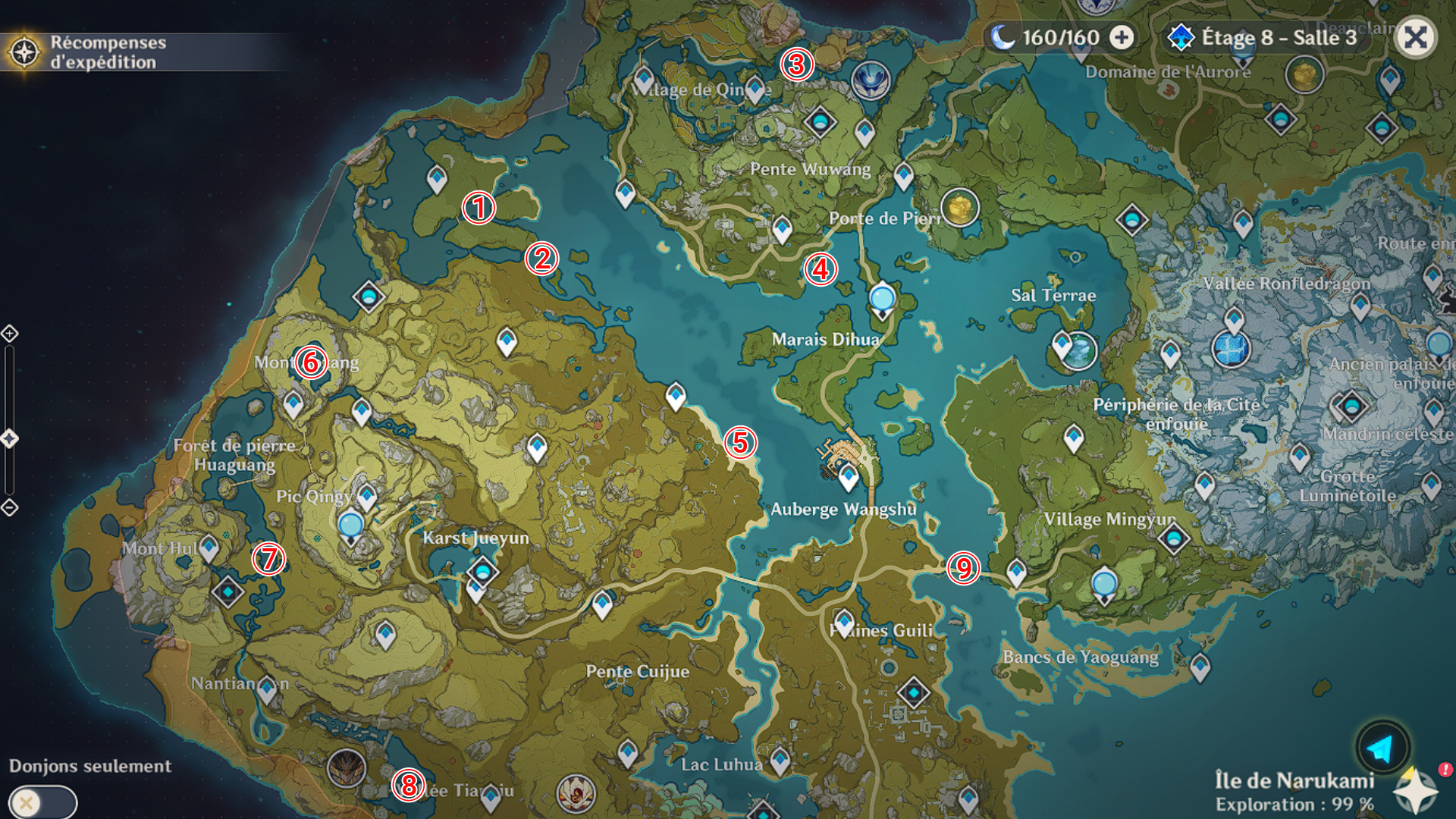 aussi aux emplacements 3, 4, 5, 6, 7 et 9 du nord de Liyue.