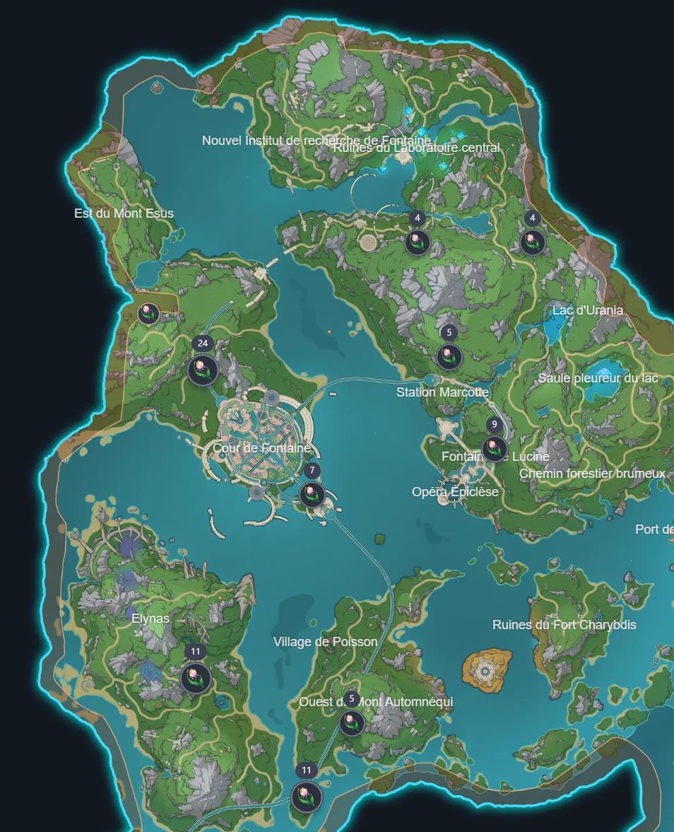 Route de farm pour récolter un maximum de roses arc-en-ciel dans Genshin Impact – source : Nepyutsu