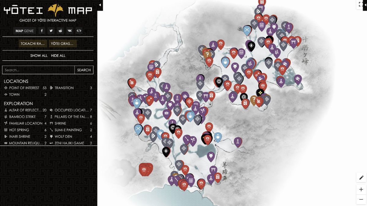 Avec cette map interactive, découvrez la position de tous les points d'intérêt, sources chaudes, autels, frappes de bambou, sanctuaires, reliquaires, tombeaux, repaires, et bien plus encore. Ghost of Yōtei n'aura assurément plus de secret pour vous !