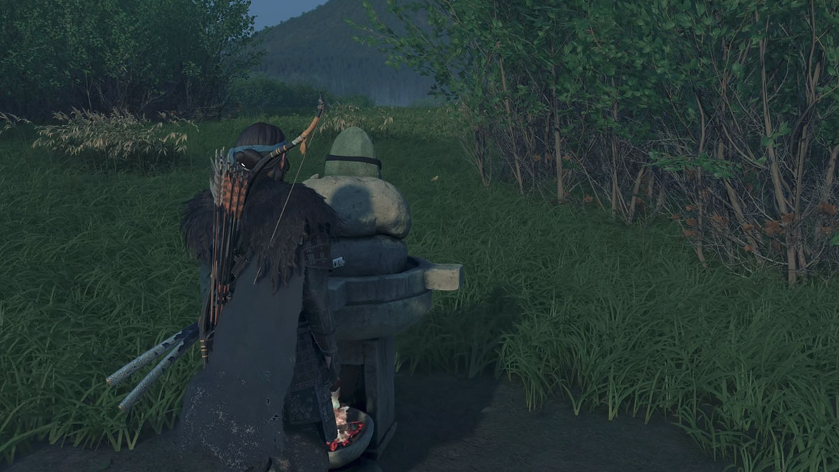 - Interagir avec chaque statue pour orienter les loups vers le Mont Yotei (la montagne enneigée visible à l’horizon).