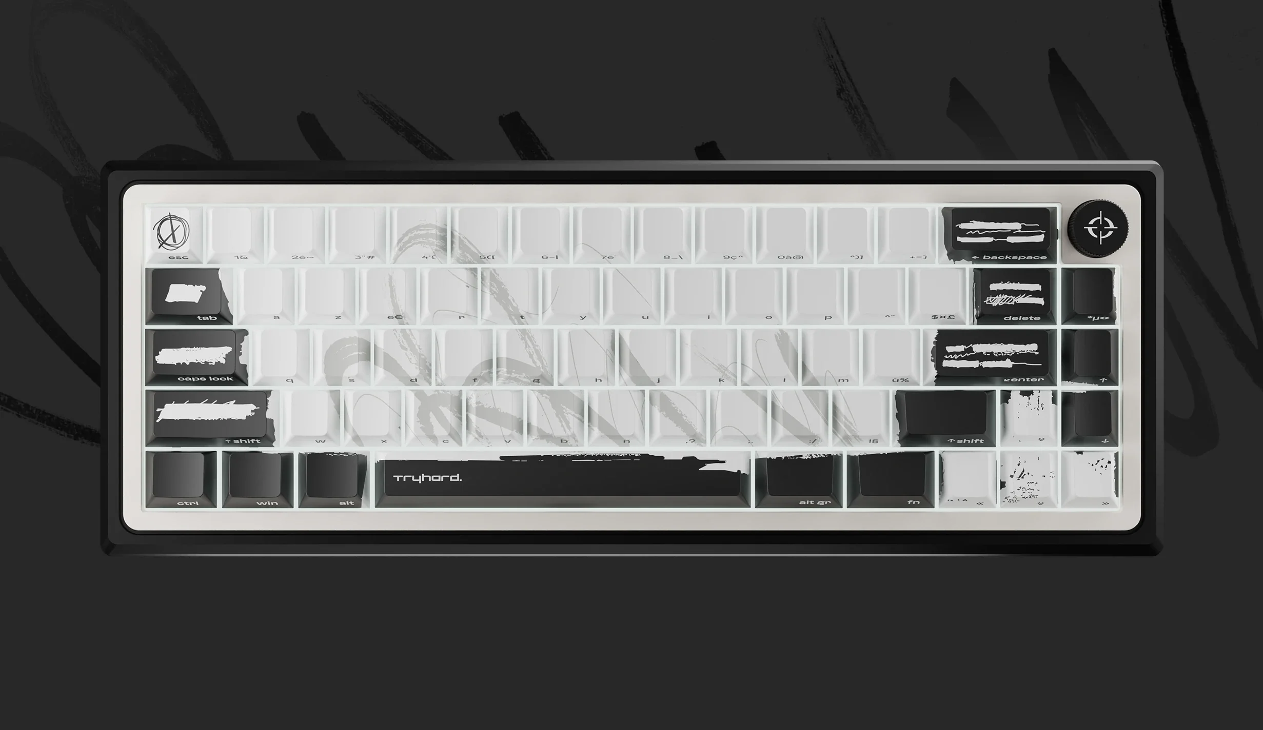 Le design du clavier Tryhard joue la carte de la simplicité avec un combo noir et blanc qui passe partout. Un choix esthétique minimaliste qui séduira ceux qui préfèrent un setup épuré.