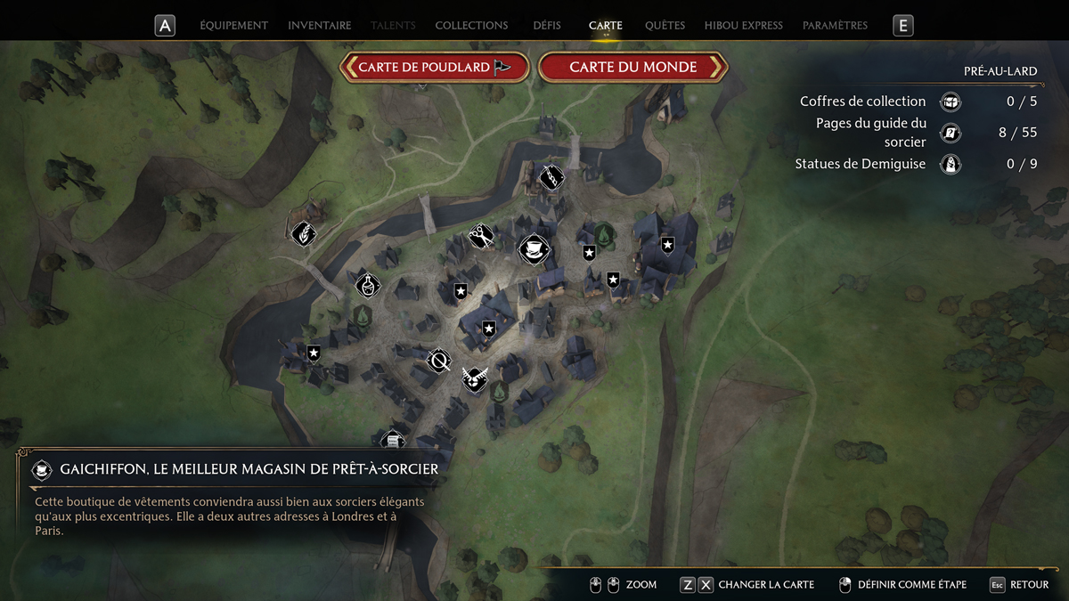 En ce qui concerne les changements de tenues et de coiffures, tout se passe dans à Prés-au-Lard. Si vous n’y avait pas encore accès, il faut que vous avanciez un peu dans
