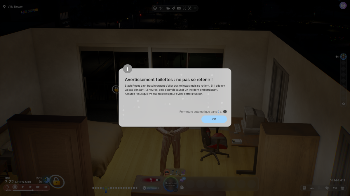 Mais les dangers ne s’arrêtent pas aux accidents domestiques. Le simulateur intègre également des risques liés à l’environnement extérieur. Ces mécaniques rappelle que, même en simulant une vie de