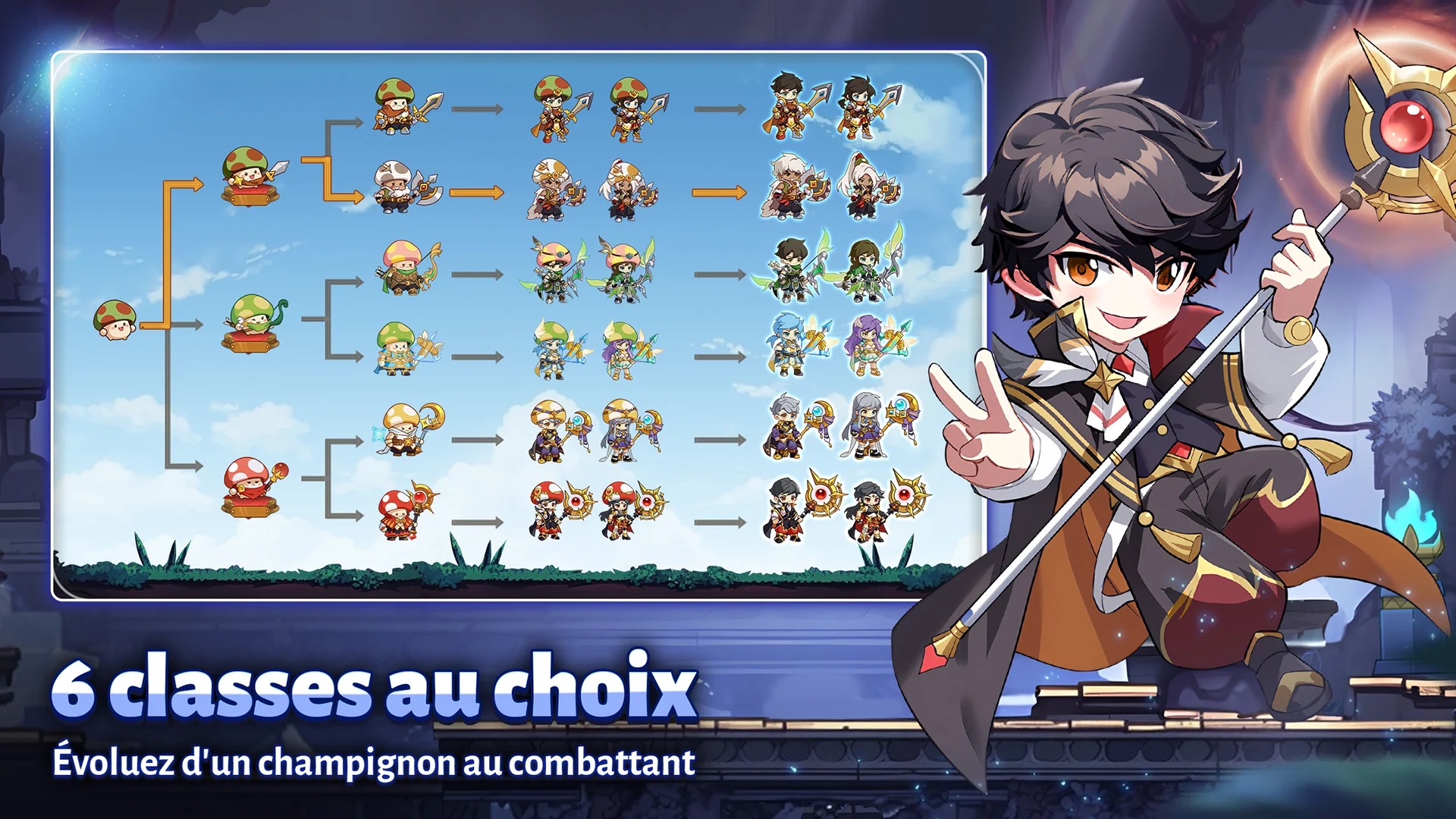 Dans Legend of Mushroom, vous pouvez choisir trois classes de bases qui peuvent évoluer par la suite comme vous pouvez le voir sur le visuel qui suit – source : Google
