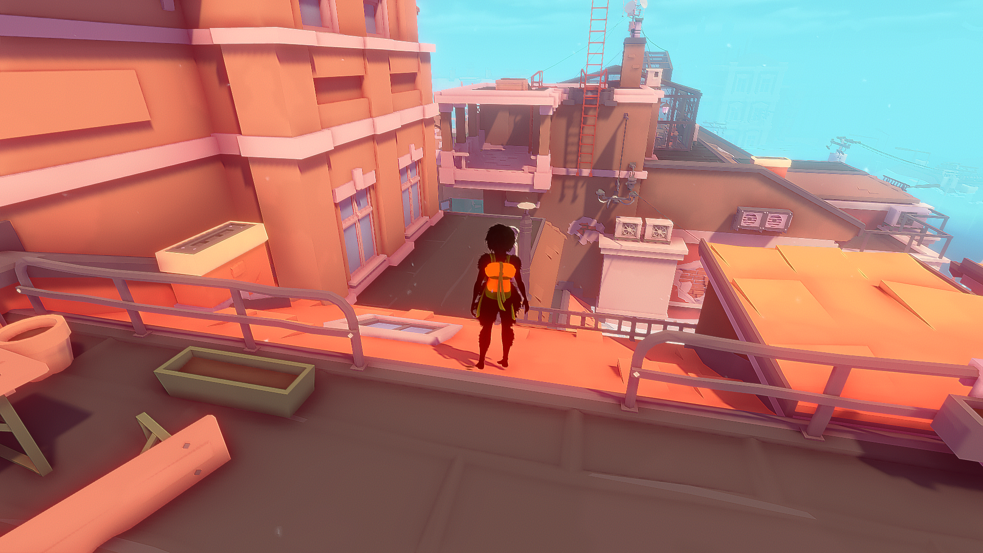 Après avoir repoussé la corruption sur la bouée, grimpez tout en haut du bâtiment en utilisant les diverses échelles. Une fois que vous êtes sur le toit le plus haut, dirigez-vous vers la gauche