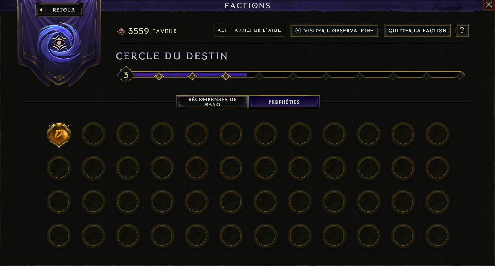 l’occurrence des prophéties (prophecies). Avant toute chose, il faut savoir que vous aurez accès aux prophéties uniquement si vous choississez la faction du Cercle du