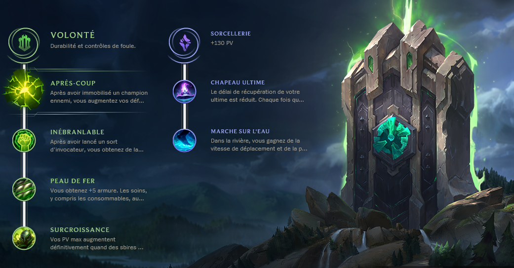 Pour un Tank, dans la Toplane, l’arbre Volonté est fondamental car il apporte de la résistance ainsi que du contrôle de foule.
