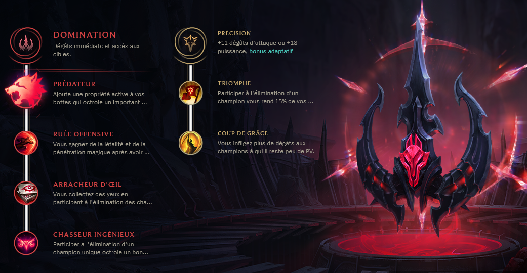 Dans le cas des assassins, Domination est l’arbre permettant de décaler efficacement sur les lanes afin de prendre le contrôle de la partie.