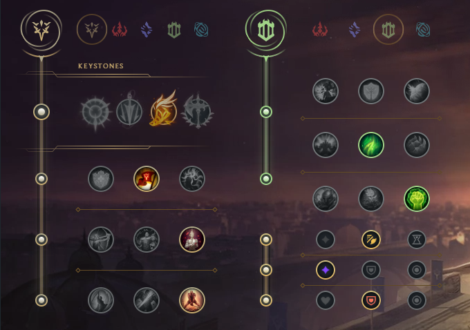 La Rancune de Serylda permet à Tryndamere de contrer l’armure tout en gagnant en haste. Enfin, le Rappel Mortel n’est à faire que contre des équipes avec du soin. Enfin, L’Ange gardien est