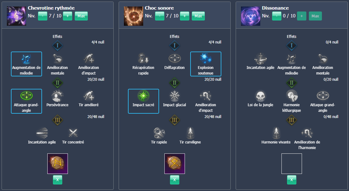 afin de réduire le temps de rechargement de 14% pour les skills concernés. Pensez aussi à mettre une gemme d’annihilation de niveau 7 sur Choc sonore, Mélomane, Prélude à la