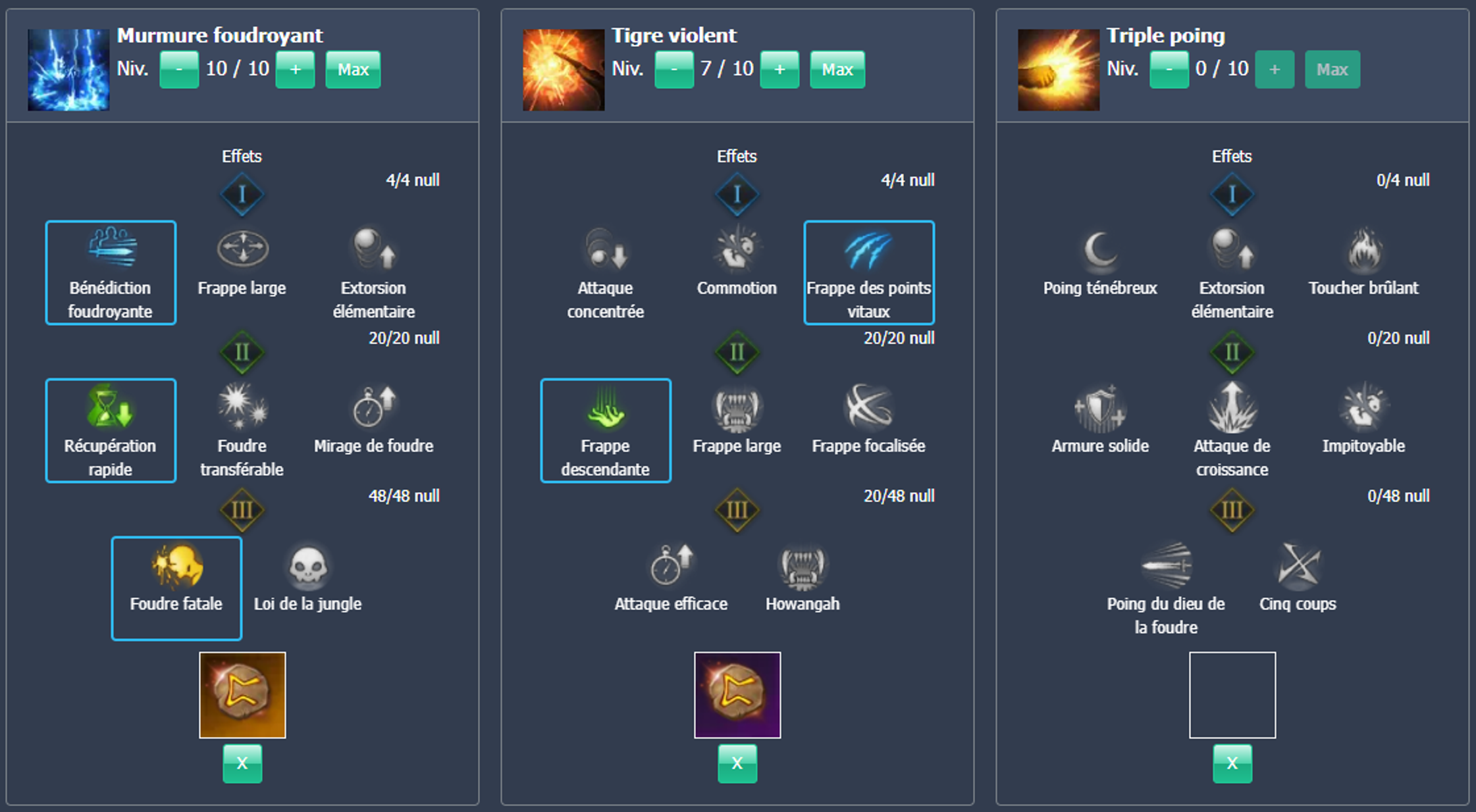 Pour ce qui est des gemmes, nous vous recommandons d’équiper une gemme d’annihilation de niveau 7 sur les compétences suivantes :