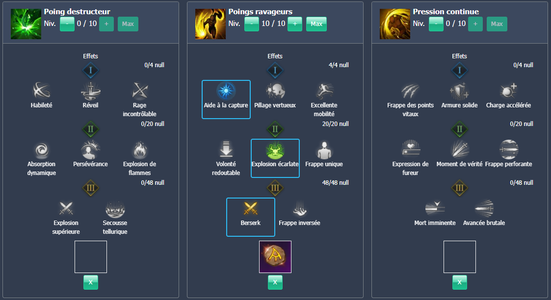 Pour ce qui est des gemmes, nous vous recommandons d’équiper une gemme d’annihilation de niveau 7 sur les compétences suivantes :