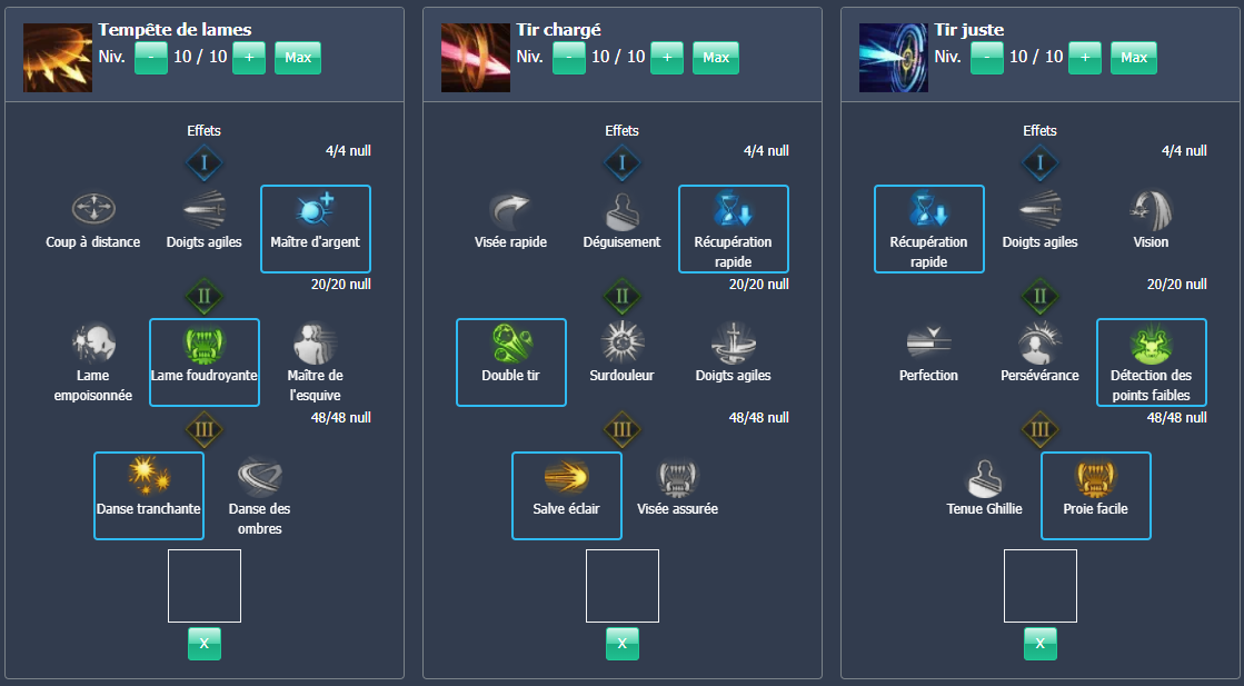 | 45 | Selon le choix que vous avez fait au niveau 30, placez 48 points dans Claymore ou Vague de flèches |