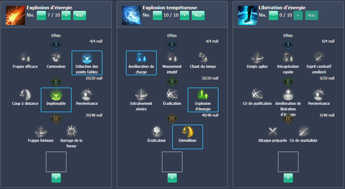 | 30 | Soyez à 20 points dans Explosion tempétueuse. Mettez aussi 4 points dans Paume foudroyante et Orbe de force |