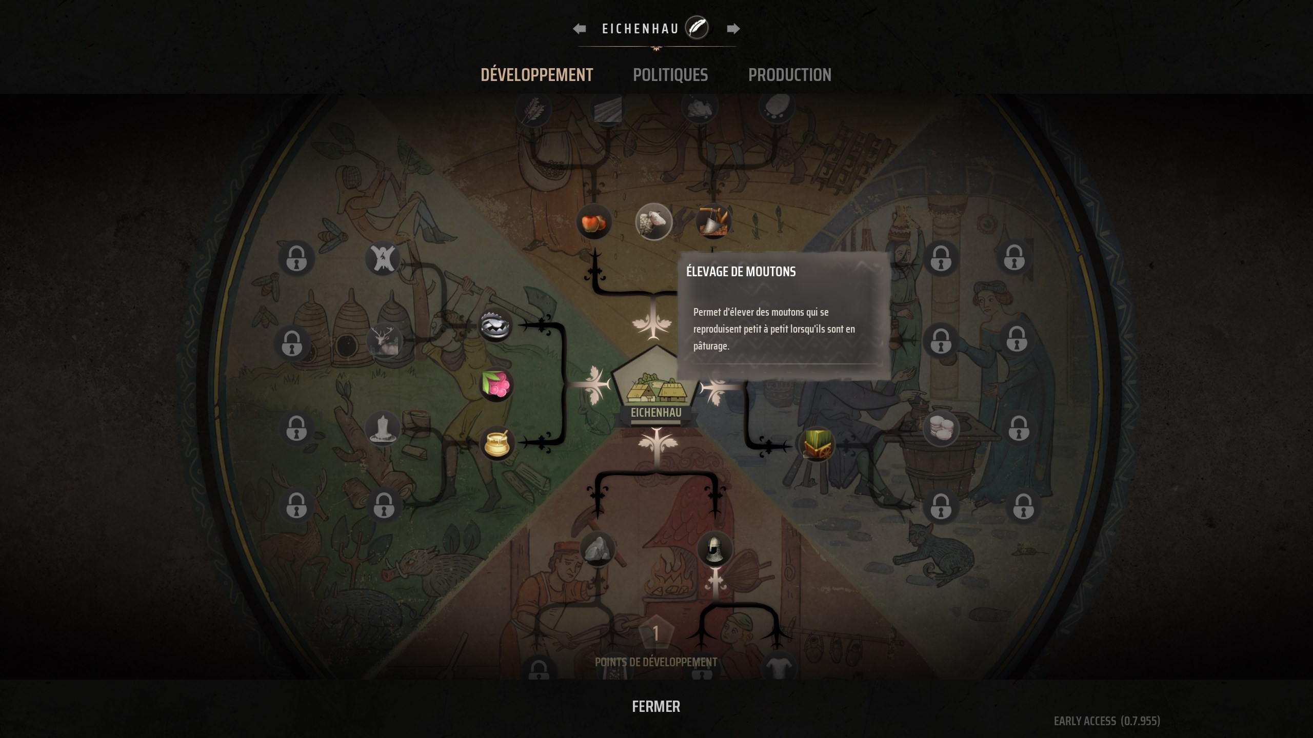 Pour reproduire des moutons dans votre colonie, vous allez devoir débloquer une amélioration spécifique qui est Élevage de moutons. Bien sûr, la reproduction prend un certain