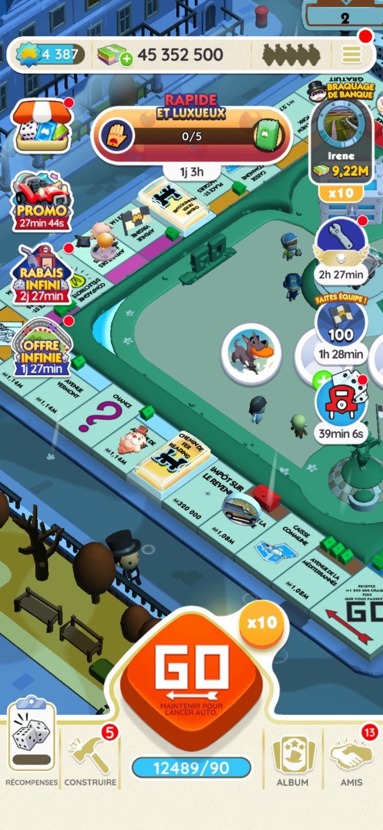 également possible de braquer la banque des autres joueurs et de détruire leurs bâtiments. Dans Monopoly Go!, les joueurs disposent d’un nombre limité de lancers de dés. Une fois qu’ils ont tous été