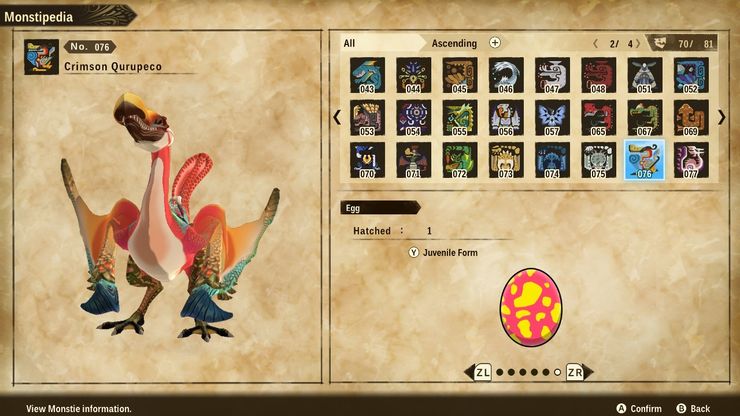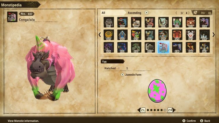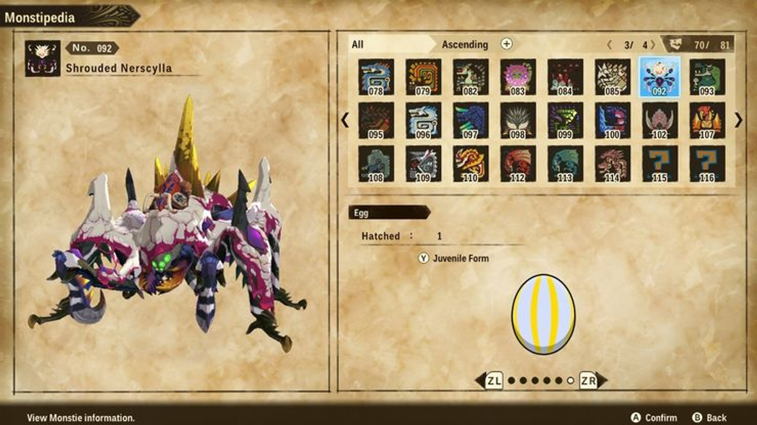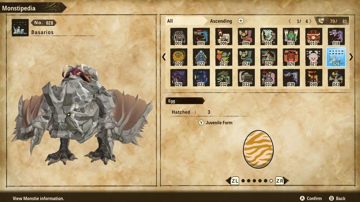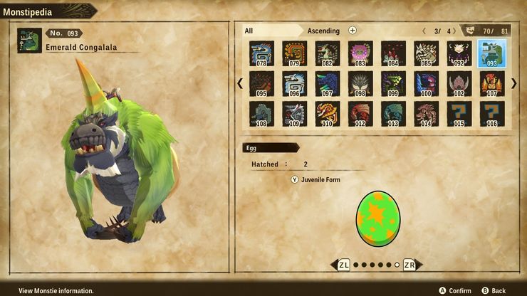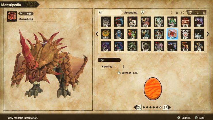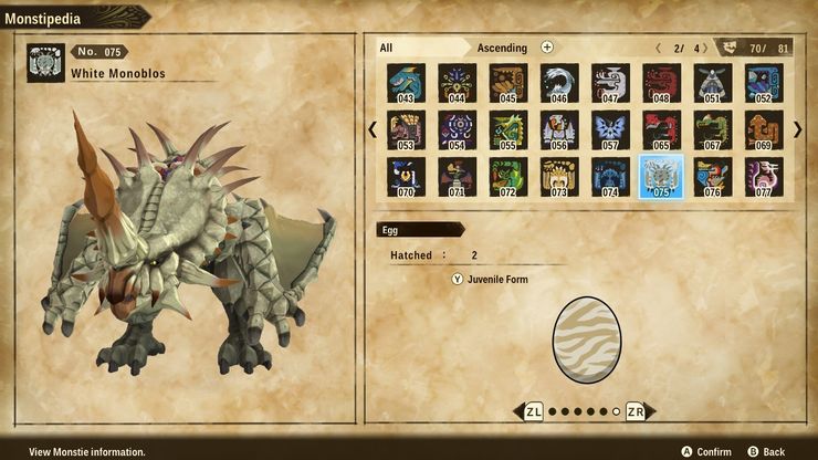 Monster Hunter Stories 2 liste monstre, combien y en a-t-il ?