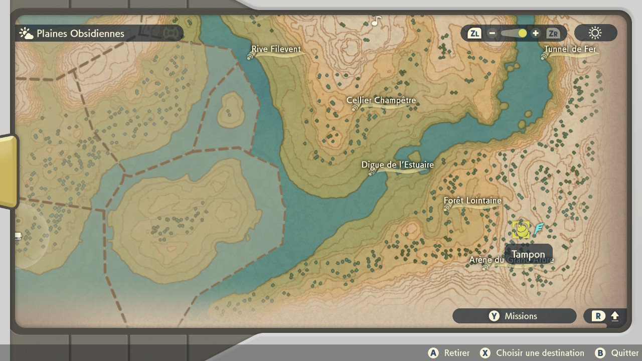 Rendez-vous aux emplacements marqués en jaune pour récupérer du bois dans Pokémon Arceus