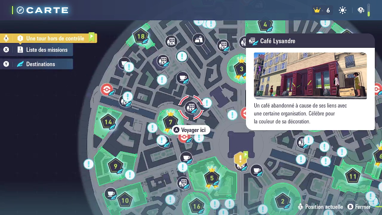 Café et Labos Lysandre, guide et carte dans Pokémon Légendes Z-A