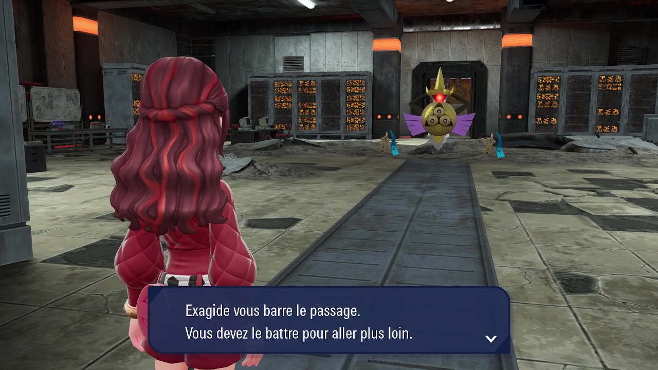 Pas le choix ici, vous allez devoir affronter Exagide Alpha et les Monorpale pour continuer. Il n'est pas possible de capturer les Pokémon.