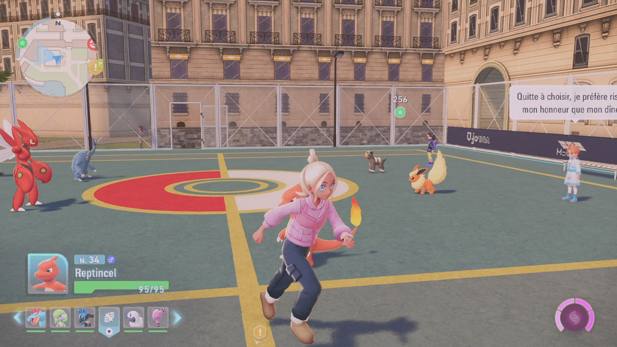 - Au centre du terrain, vous verrez une Poké Ball jaune brillante : c’est la CT Laser Glace.