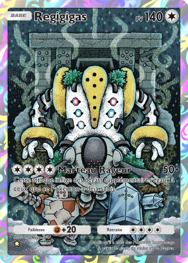 Regigigas peut infliger 200 Points de dégats en une attaque s’il ne lui reste plus que 10 PV avec la Cape Géante.