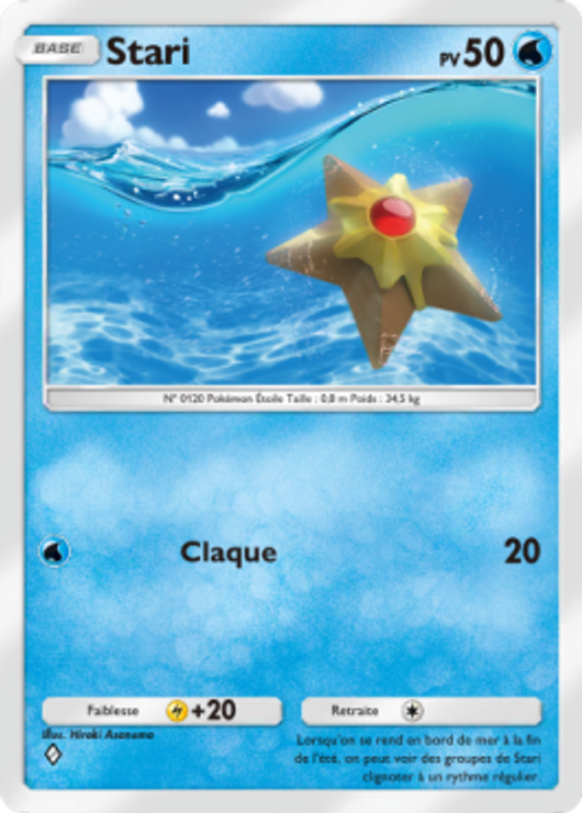 Le deck Staross ex repose sur la capacité de Staross à infliger rapidement des dégâts grâce à son attaque Hydro-Éclaboussure, qui coûte seulement deux énergies Eau pour 90 dégâts. De plus, Staross