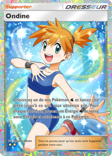 Ondine et les énergies Eau : Ondine est un atout important dans ce deck, car elle permet d’ajouter de l’énergie Eau à votre Staross grâce aux lancers de pièce, rendant votre jeu
