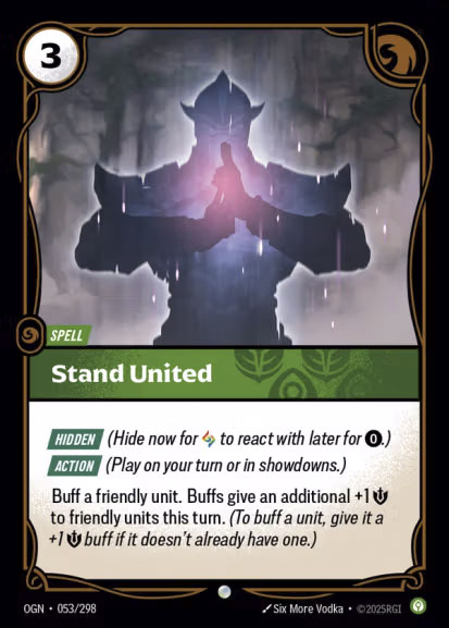 Ce deck mise sur la discipline, les buffs de puissance (Might) et un style de jeu équilibré entre attaque et défense. Il récompense les joueurs capables d’anticiper, de lire le jeu adverse et de choisir le bon moment pour frapper.