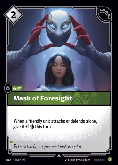 - Mask of Foresight : confère +1 Might à une unité tant qu’elle est seule sur le champ. Parfait pour les duellistes.