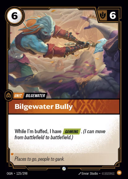 - Bilgewater Bully : si buffé, il peut se déplacer d’un champ à l’autre. Idéal pour surprendre et conquérir un terrain en un seul mouvement.