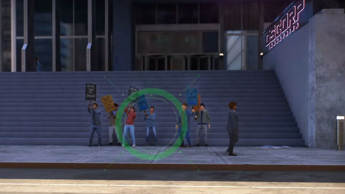 Cherchez un groupe de manifestants devant le siège d’Oscorp. Les habitants de New York n’ont pas oublié ce qui s’est passé. Capturez cet instant.