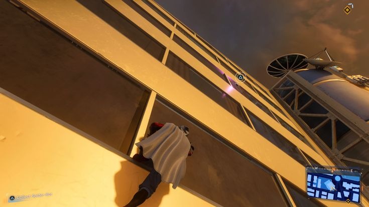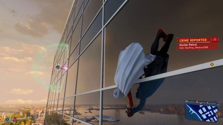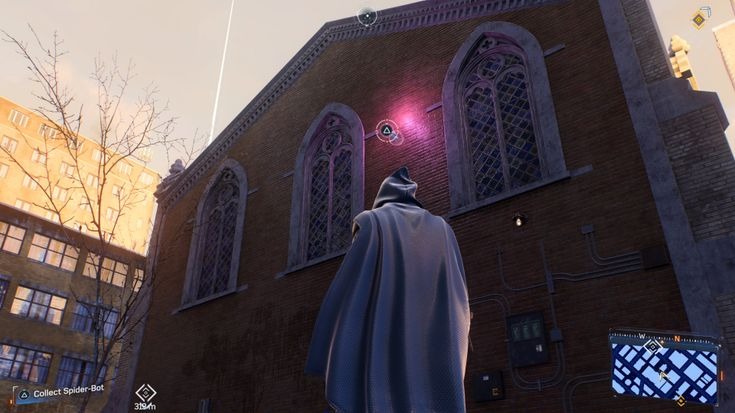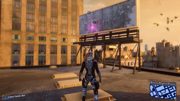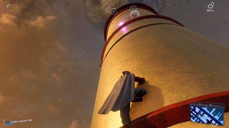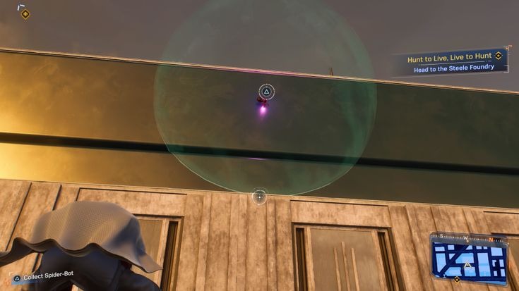 Fidèle à son nom, le Spider-Bot de Vulture se trouve bien haut dans les cieux au-dessus de Hell’s Kitchen. Comme d’habitude, approchez-vous en utilisant les Ailes de toile pour l’attraper en tant