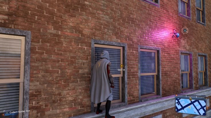 Le deuxième Spider-Bot à Chinatown se trouve sur le côté d’un bâtiment. Grimpez pour attraper le Spider-Bot de Spider-Woman.