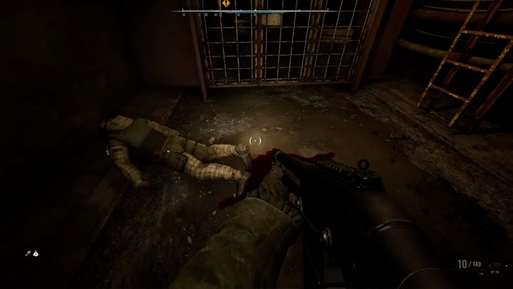 le corps du Sgt. Nikitin, fouillez-le pour obtenir une clé qui vous permet d’accéder à une échelle vous ramenant à la surface.