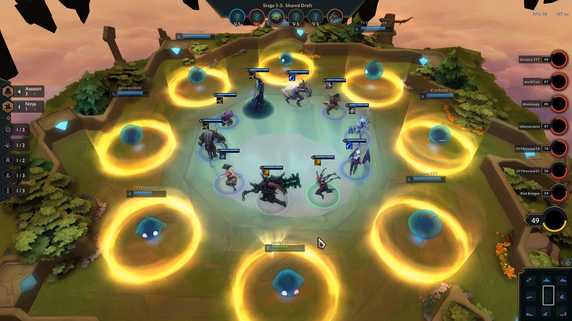 ». Tous les joueurs sont téléportés au centre de la carte, et un manège tourne, avec 10 champions équipés