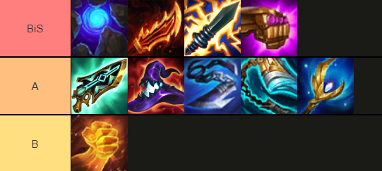 (Best in Slot, les meilleurs objets du champion) pour fonctionner.