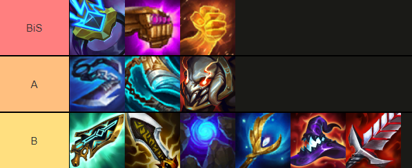 Darius veut absolument une Soif de sang pour survivre et la Détermination du titan est très bien pour lui donner plus de résistances. En 3e item il veut