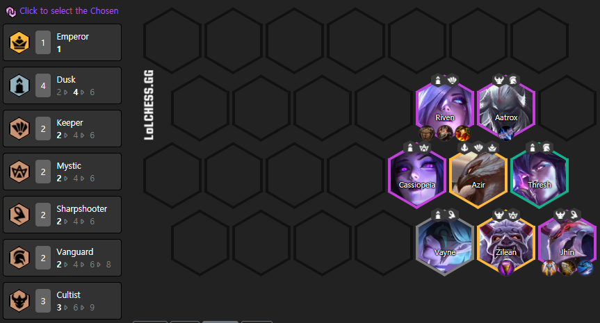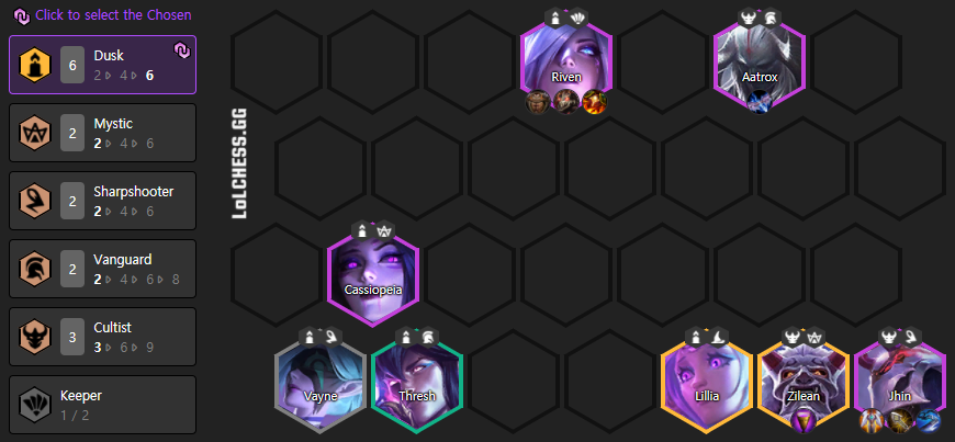 légendaires) et surtout un élu puissant à 4 PO : Riven ou Cassiopeia Être du crépuscule sont les meilleurs, mais Riven Sentinelle