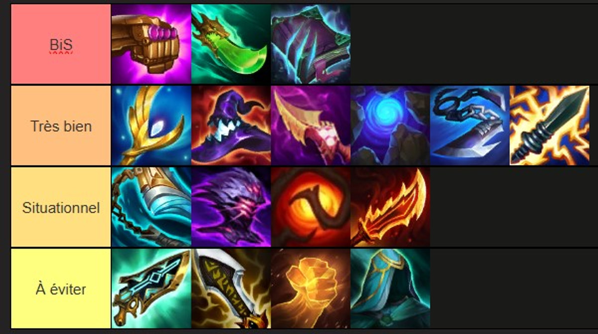 Enfin, pour Violet, on voudra idéalement lui donner des items bruiser comme Soif-de-sang, Détermination du titan ainsi qu’un