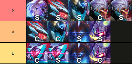 Les Augments marquées d’un S sont celles de type soutien, qui profitent à toute l’équipe, tandis que celles marquées d’un C sont celles de type carry, qui boostent le champion