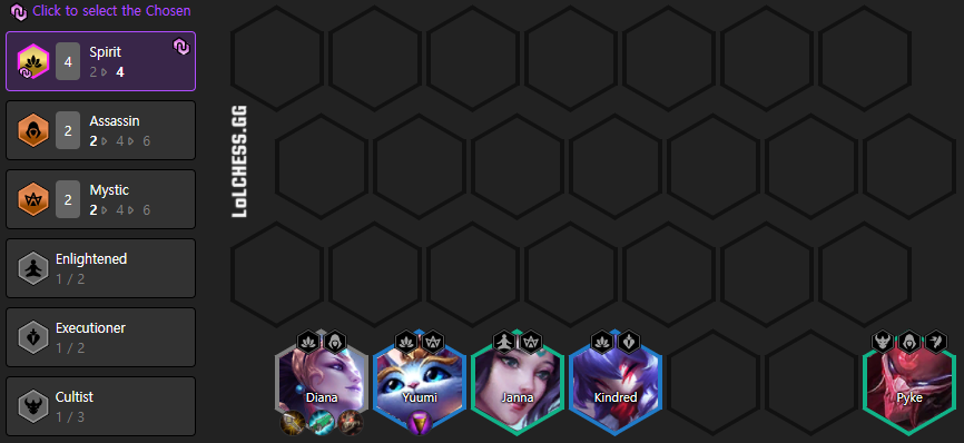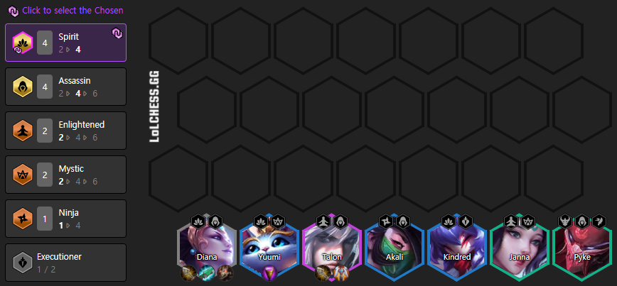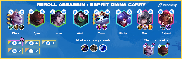Diana Élue Esprit ou Assassin : Pour que cette composition fonctionne, vous avez besoin de votre Diana élue. Si elle est Esprit, vous
